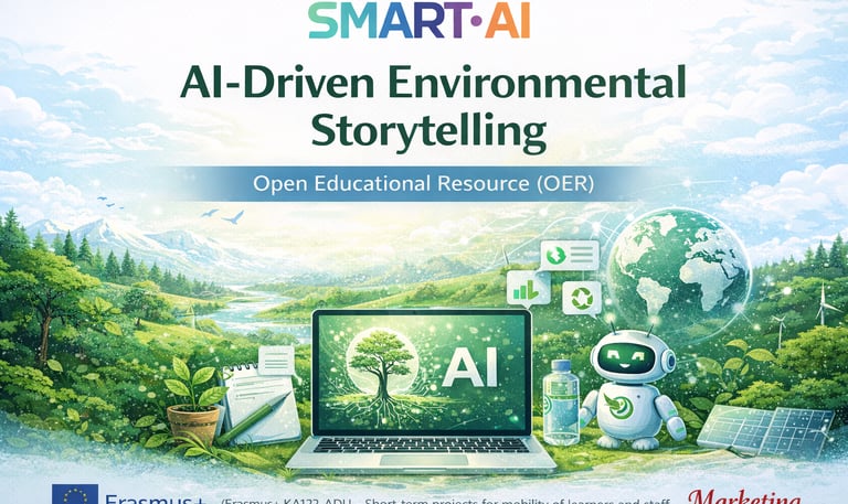 This OER was developed within the project SMART-AI and is based on learning experiences gained during job-shadowing mobility in Belgrade. It explores how artificial intelligence can support environmental storytelling in adult education through practical, learner-centred approaches. The resource combines theoretical foundations, hands-on activities, visual walkthroughs and reflective exercises. It is designed for adult educators, trainers and facilitators who wish to integrate AI tools into sustainability-focused learning contexts.