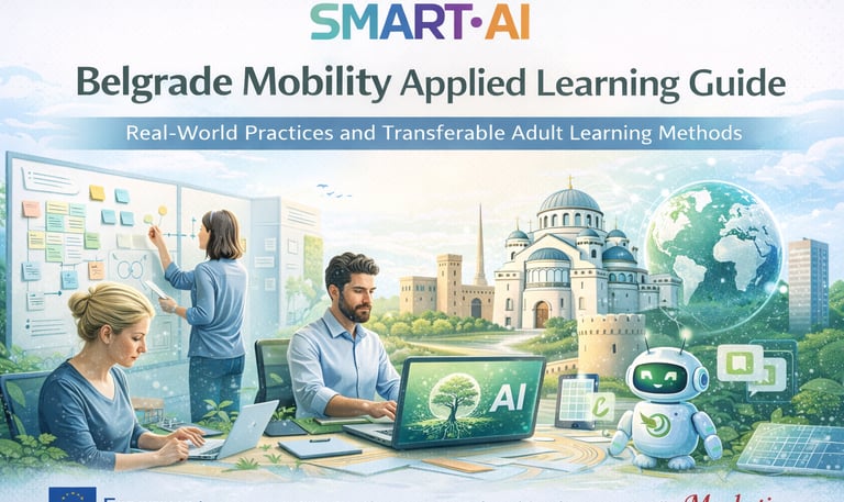 This OER documents applied learning from the SMART-AI job-shadowing mobility in Belgrade, focusing on real teaching environments and adult-learning practices observed at BAPUSS. It illustrates how adult education is delivered in practice through structured facilitation, applied tasks, digital tools and learner-centred approaches.