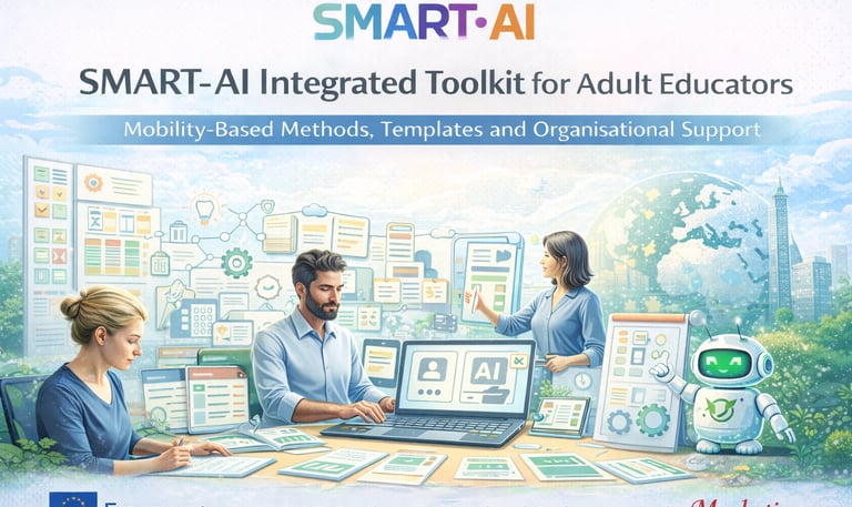 The toolkit focuses on applied adult learning, AI-supported practices, and competence-based approaches that can be directly integrated into everyday educational work.